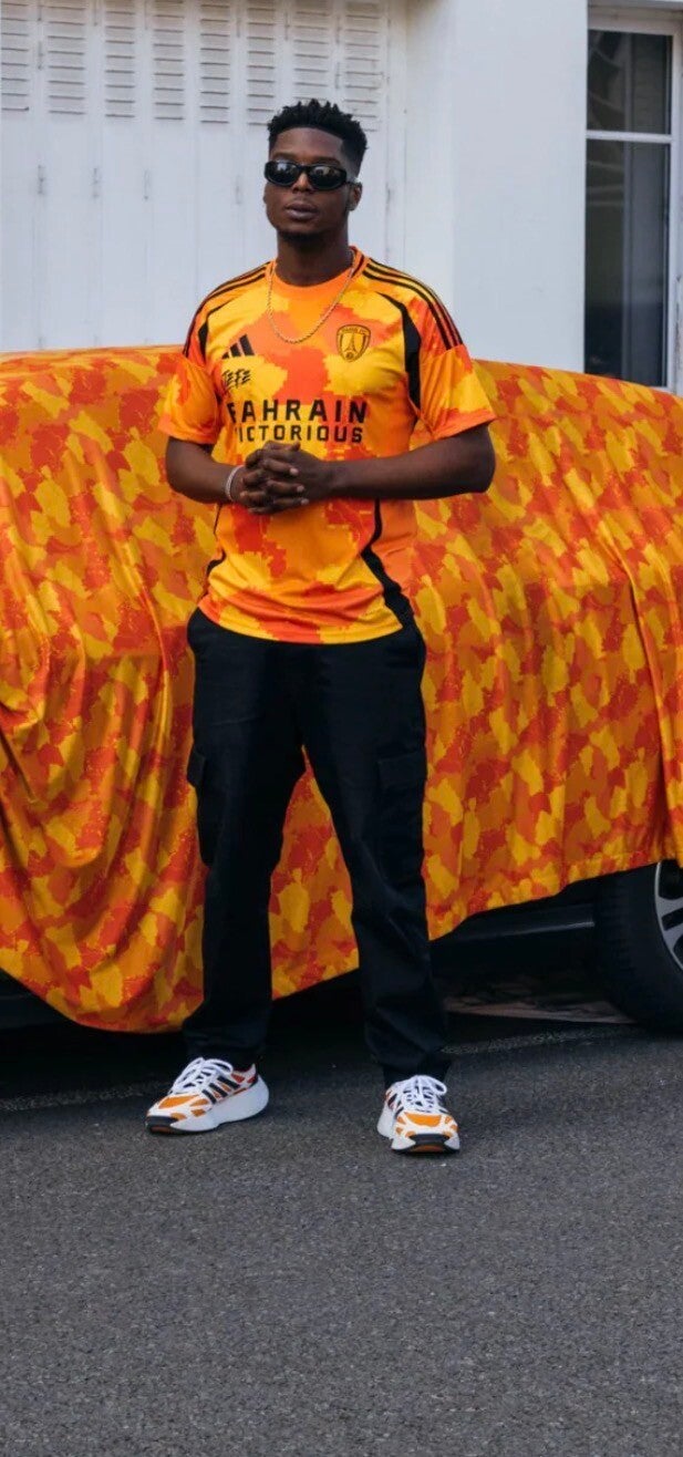 Ce maillot exclusif fusionne l’esthétique football avec une énergie urbaine assumée. Sa palette orange pixelisée, ses détails noirs contrastés et ses logos brodés signent une pièce unique, à la croisée du sport et du lifestyle.