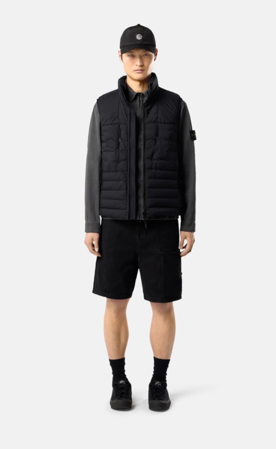 Doudoune sans manches en une seule couche de nylon extensible léger avec tunnels sans coutures pour un meilleur maintien des plumes, avec poches zippées, cordon de serrage au niveau du bas et glissière bidirectionnelle. Modèle teint en pièce avec l’ajout d’un agent déperlant.